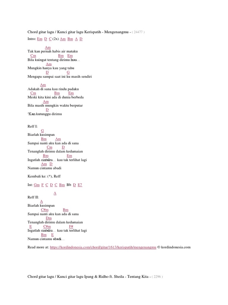 Lirik Lagu Dan Chord Lagu Indonesia Lyric Chord Titip Rindu