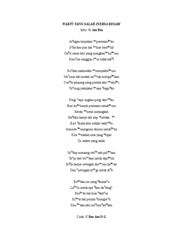 Lirik Lagu Dan Chord Kunci Gitar Waktu Yang Salah