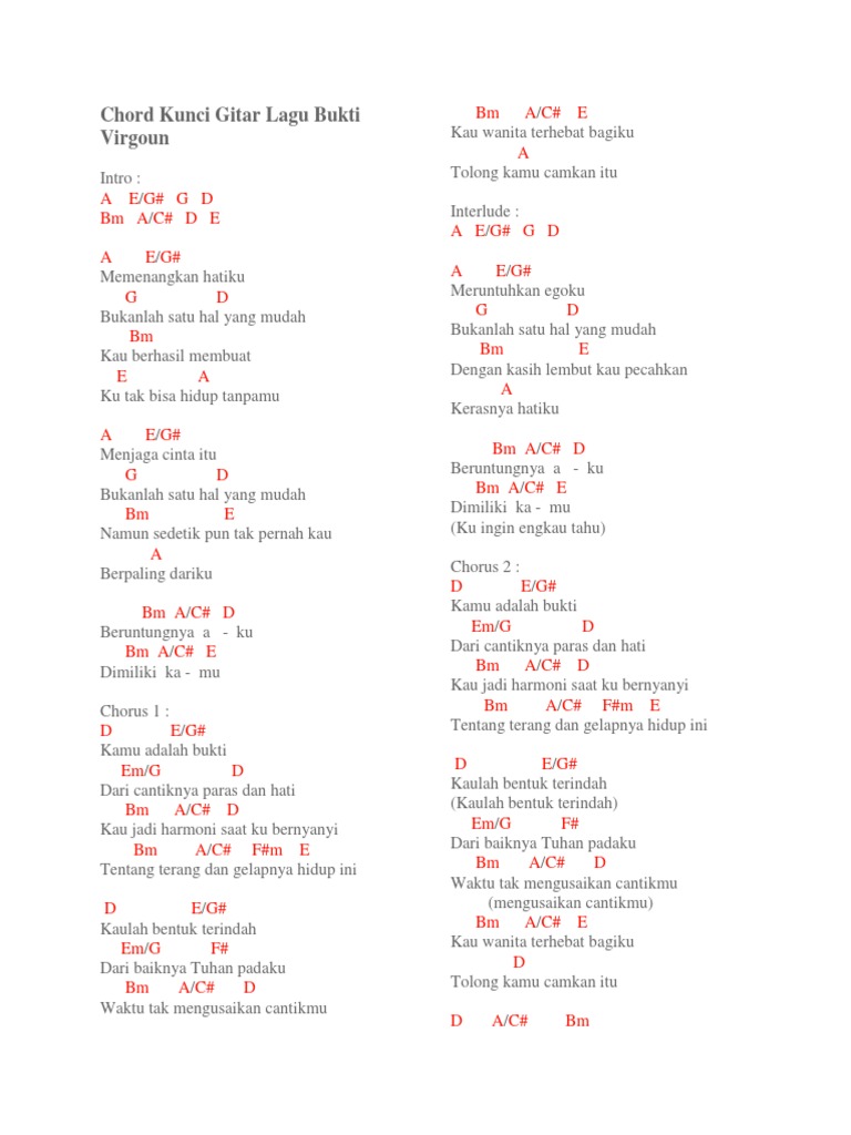Virgoun Bukti Chord Kunci Gitar Dan Lirik Lagu Chord Gitar Online