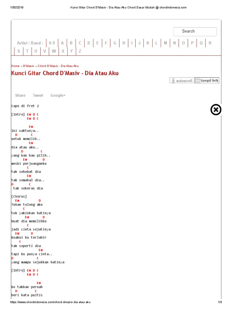 Kunci Gitar Chord D Masiv Dia Atau Aku Chord Dasar Mudah