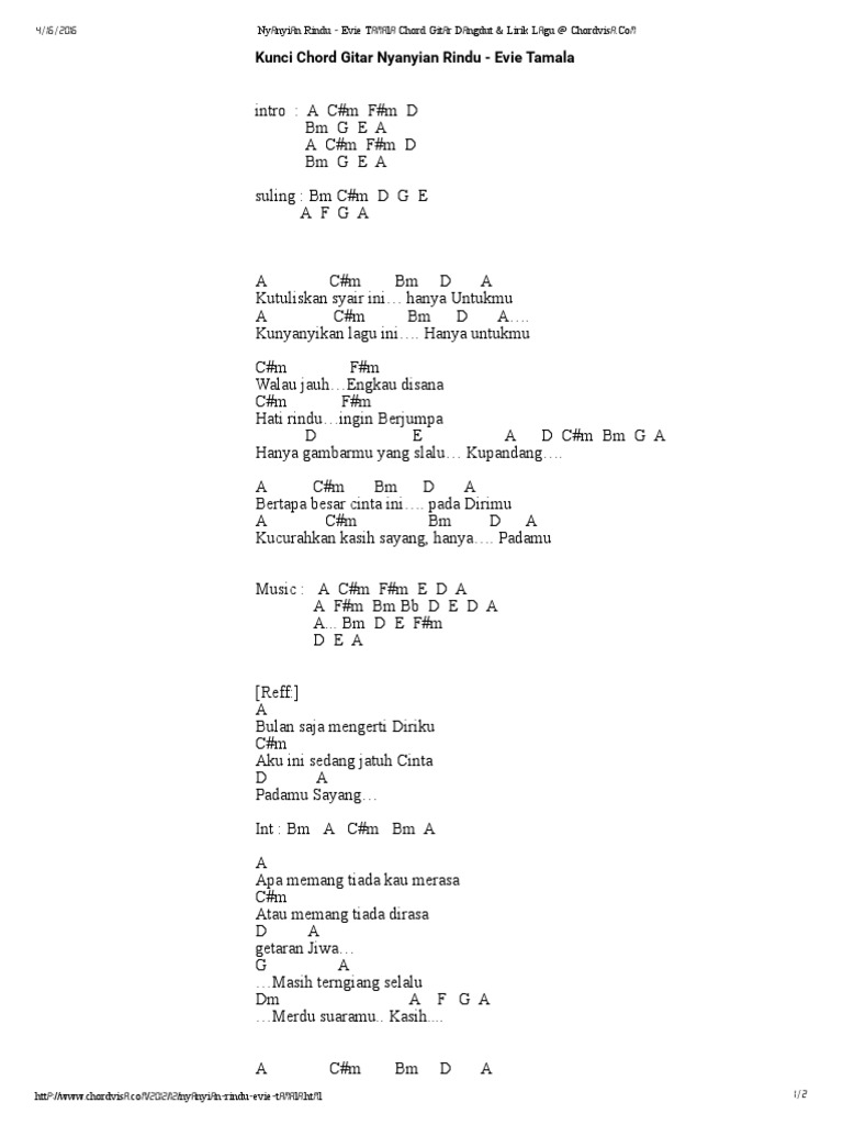 Kunci Chord Gitar Dan Lirik Lagu Hanya Rindu Yang Dinyanyikan