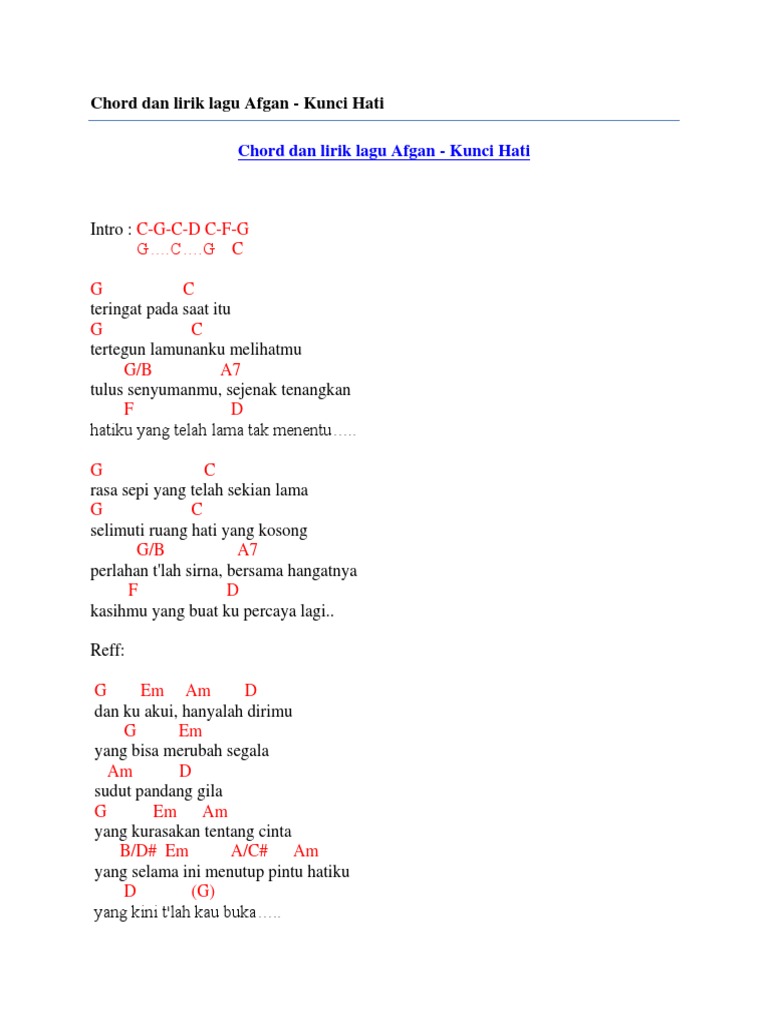 Chord Dan Lirik Lagu Afgan Kunci Hati