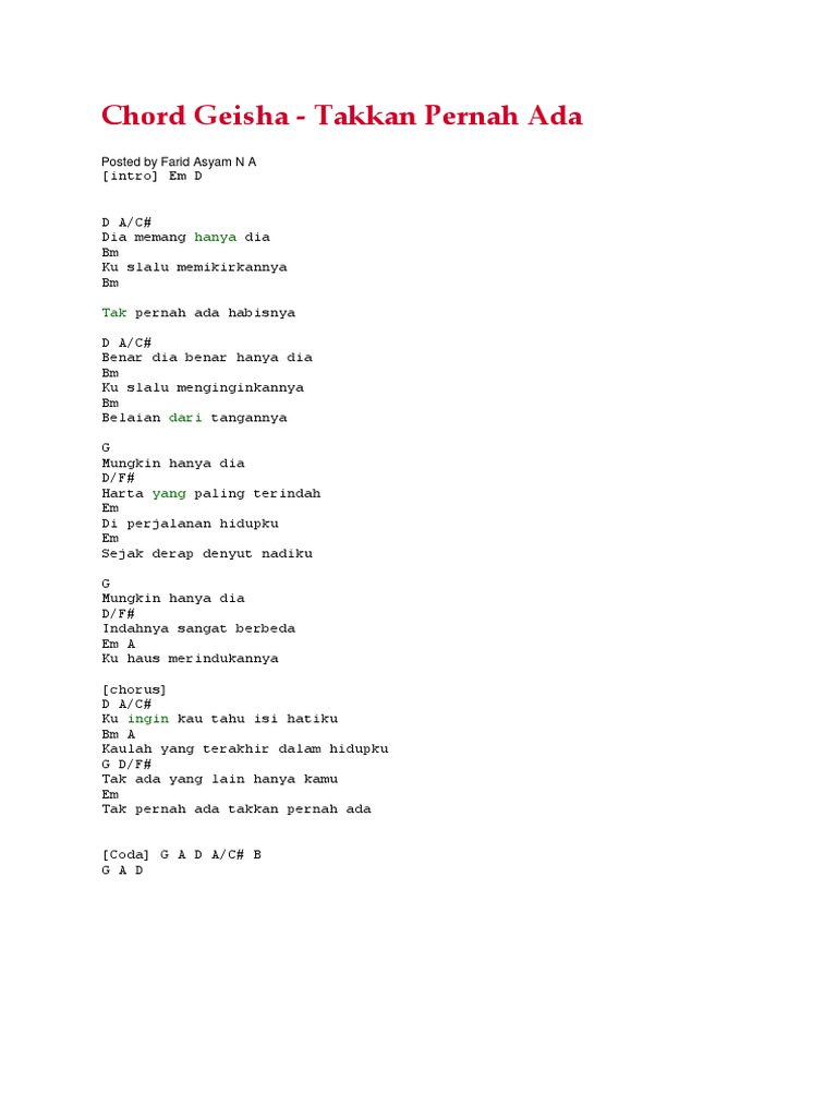 Chord Geisha Takkan Pernah Ada Hanya