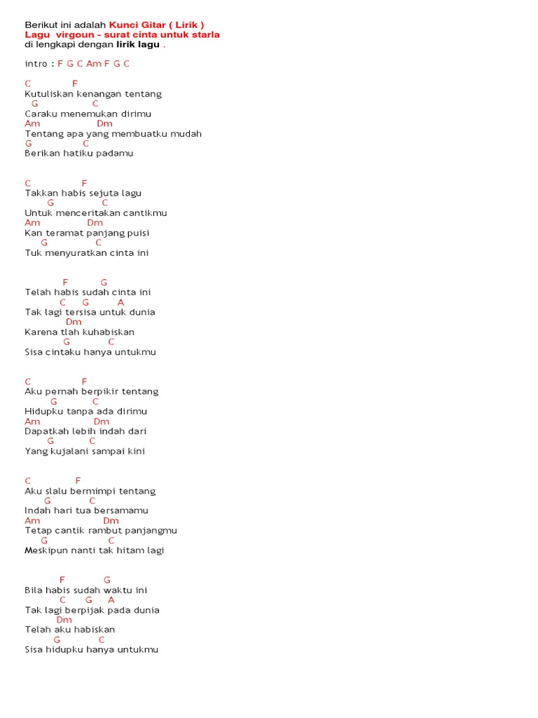 Chord Surat Cinta Untuk Starla By Virgoun Surat Cinta Lagu Cinta