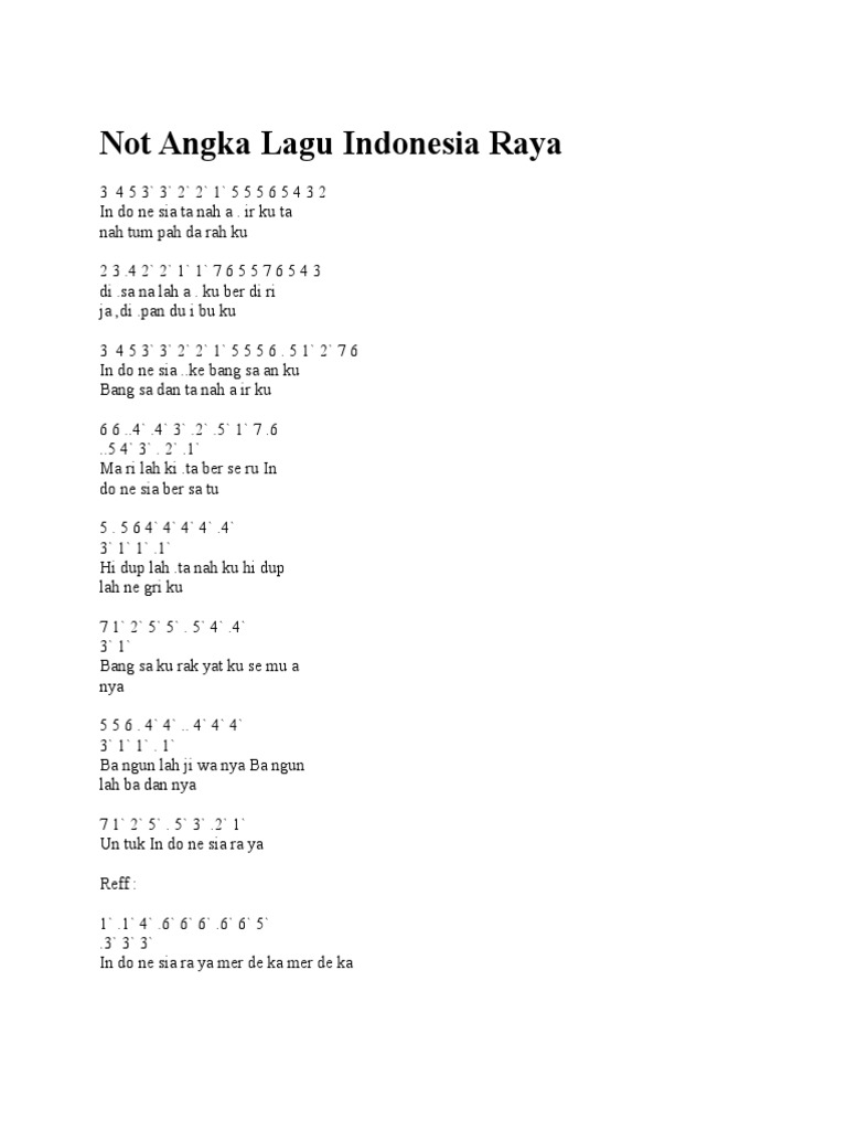PNG. Not angka pianika indonesia raya dari w.r supratman ini bisa kamu mainkan pada pianika, piano dan seruling. Indonesia raya adalah lagu kebangsaan yang wajib dinyanyikan di momen penting kenegaraan, salah satunya upacara.