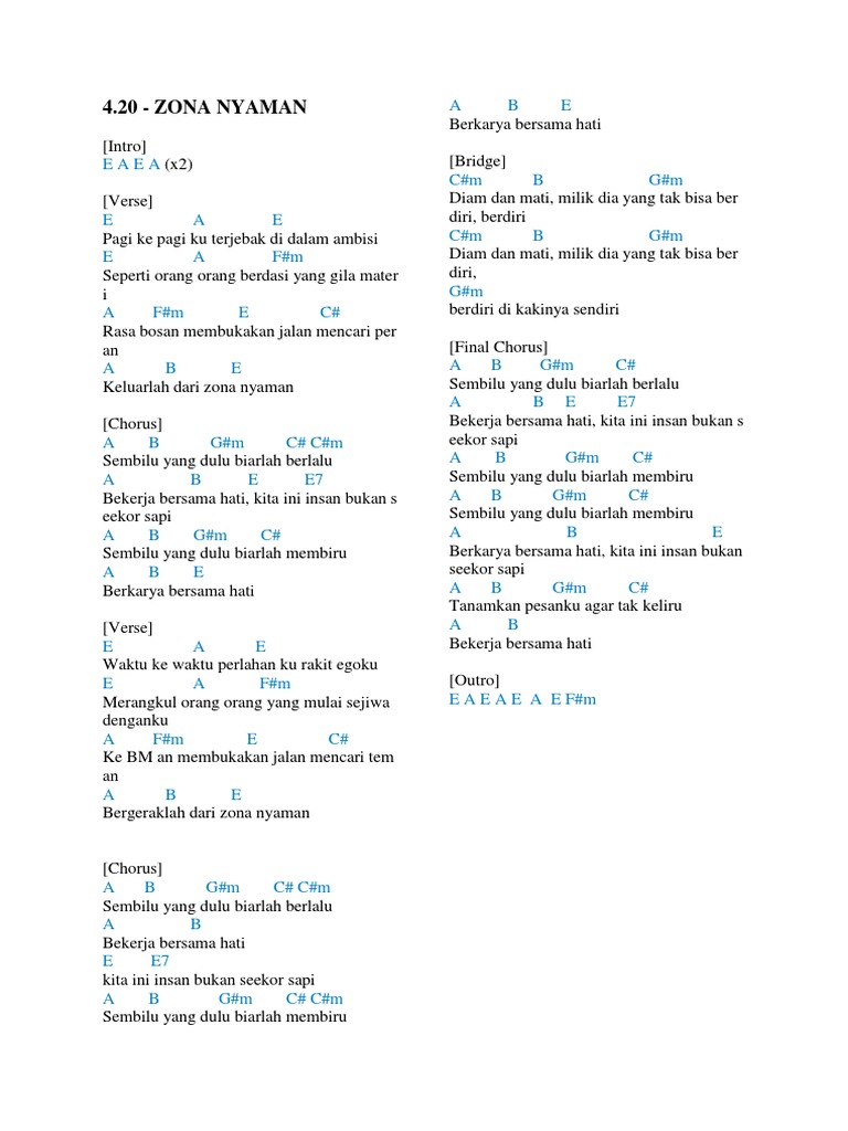 Chord Kunci Gitar Zona Nyaman Fourtwnty - Tribun Jateng (Janie Elliott) Dalam postingan ini saya ingin berbagi sedikit tutorial cara membentuk posisi jari jemarinya. Kami adalah tempat gudang lagu terbaik, jadi jangan lupa cek lagu Fourtwnty yang lainya. E C#m kemarin sempat E C#m aku berbuat sala.