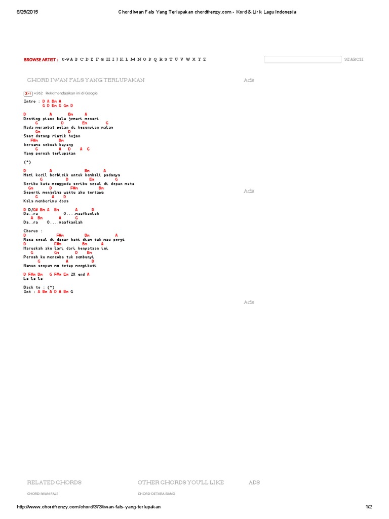 Chord Iwan Fals Yang Terlupakan Chordfrenzy from imgv2-2-f.scribdassets.com Demikan artikel saya membahas tentang kunci gtar iwan fals, semog bisa membantu kamu yang baik yagn sengan belajar. D a bm a denting piano kala jemari menari g d em g nada merambat pelan di kesunyian malam gm d saat datang rintik hujan f#m bm bersama sebuah bayang g a d a g yang pernah terlupakan. intro: c g am g c g am g.